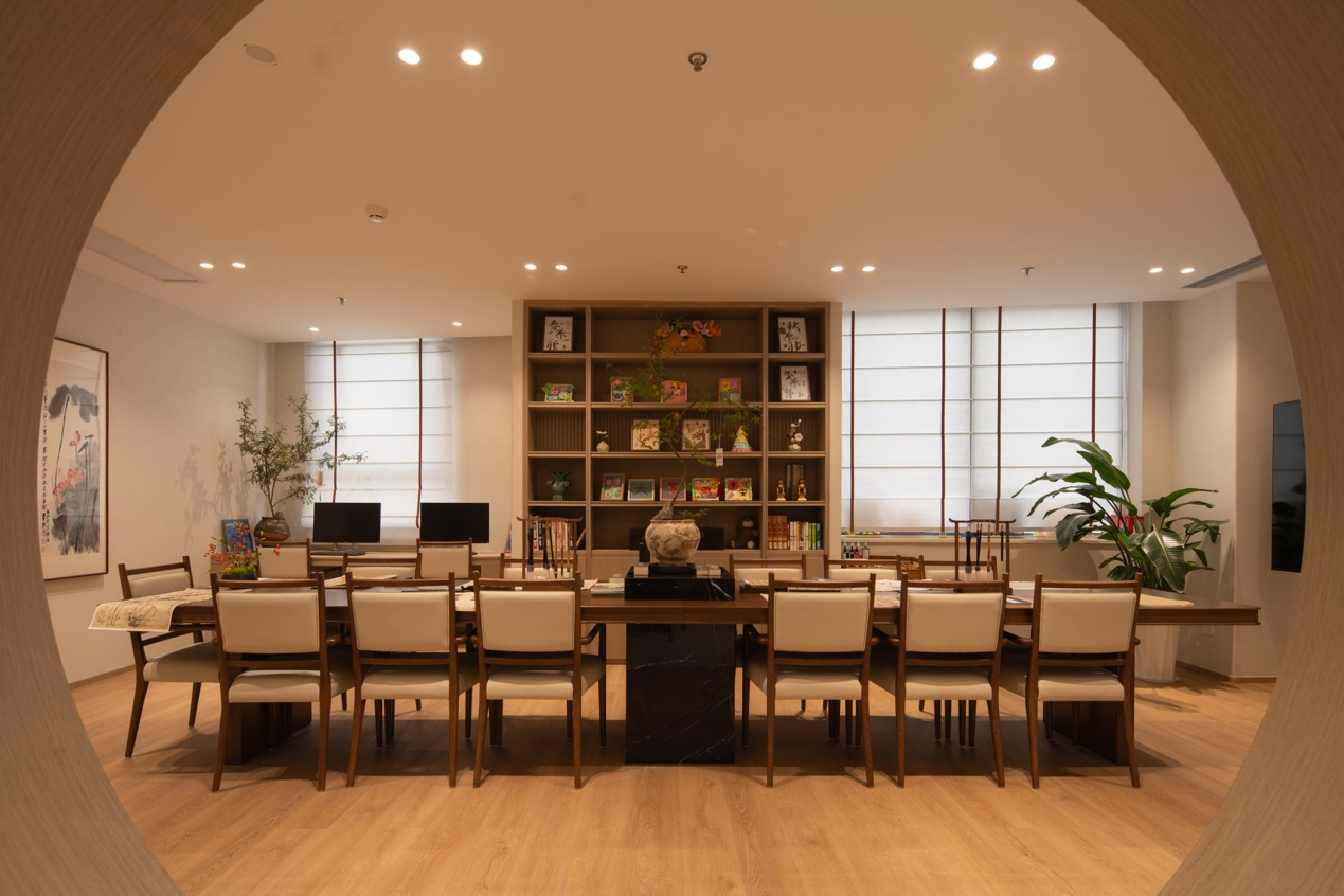 “大家的家·长沙雨花城心社区”总建筑面积约8000平方米,规划113间康养单元,以中式书院美学设计,为长者营造出“城中有家、家中有爱”的归属感。社区坐落于城市核心区,周边环绕多家三甲医院与繁华商圈,充分践行“离医院不远、离子女不远、离烟火气不远”的城心养老理念,让长者在享受便利城市生活的同时,也能获得贴心的医疗与照护。